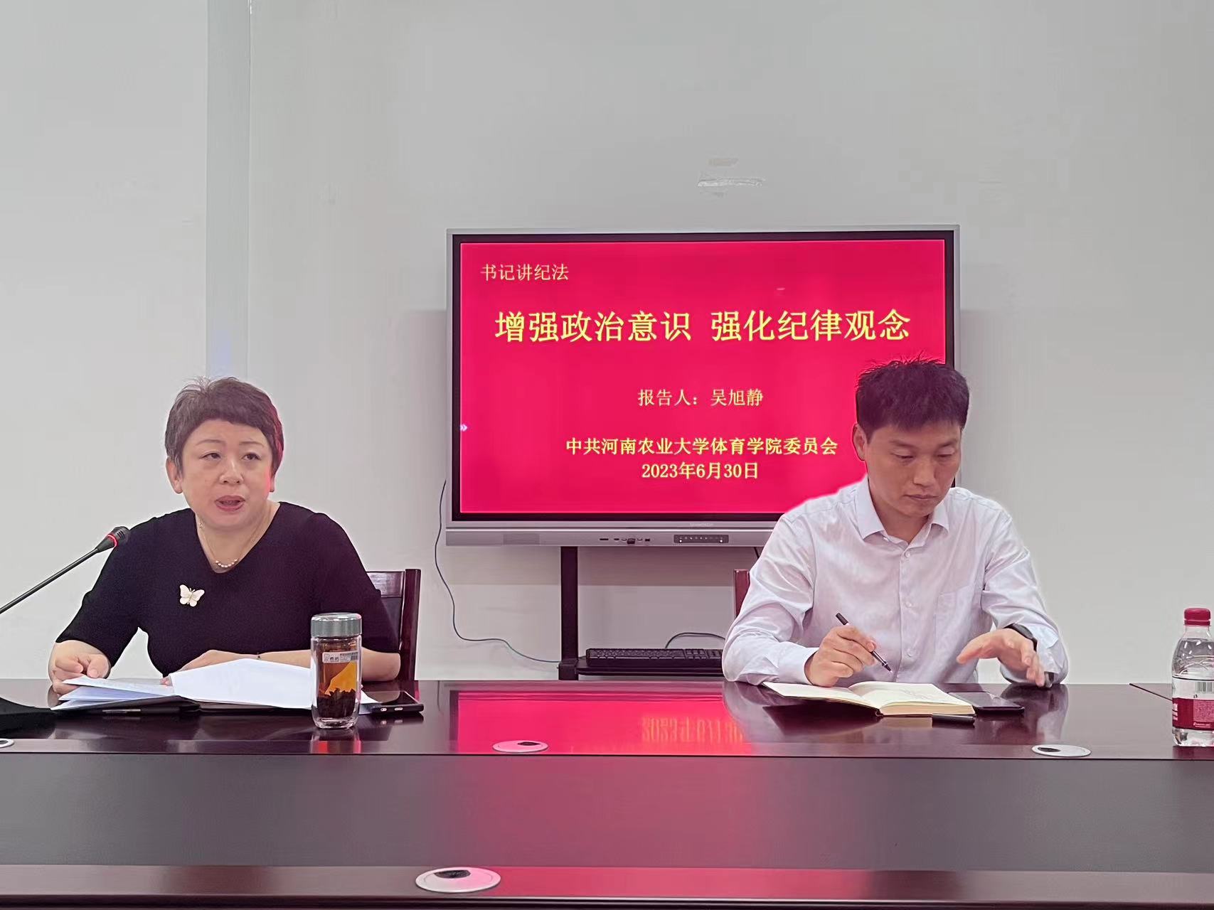 吴旭静向学院全体教职工作题为《增强政治意识 强化纪律观念》的专题报告。她从全面从严治党永远在路上、政治纪律和政治规矩、典型案例剖析等三个方面进行了党纪党规教育。