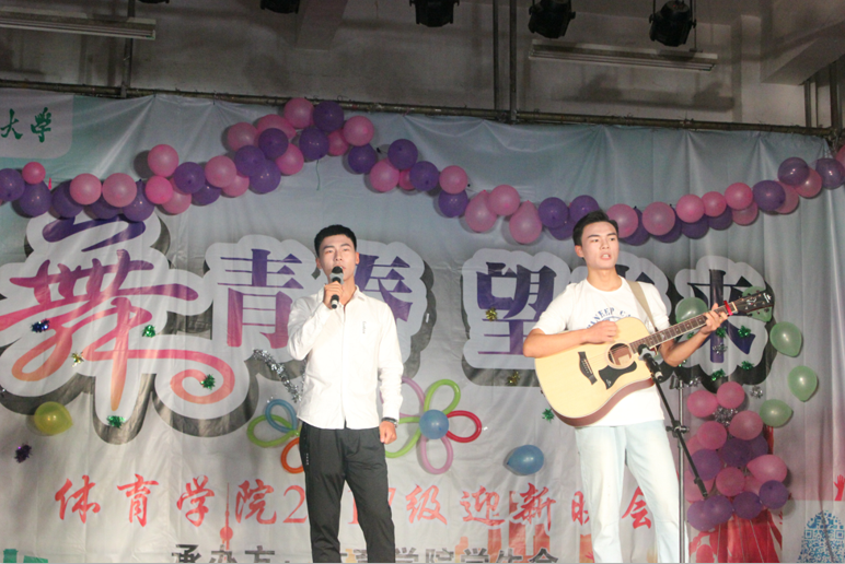 香蕉视频 16级学生在晚会上弹唱《光辉岁月》,给2017级新生送去祝福。