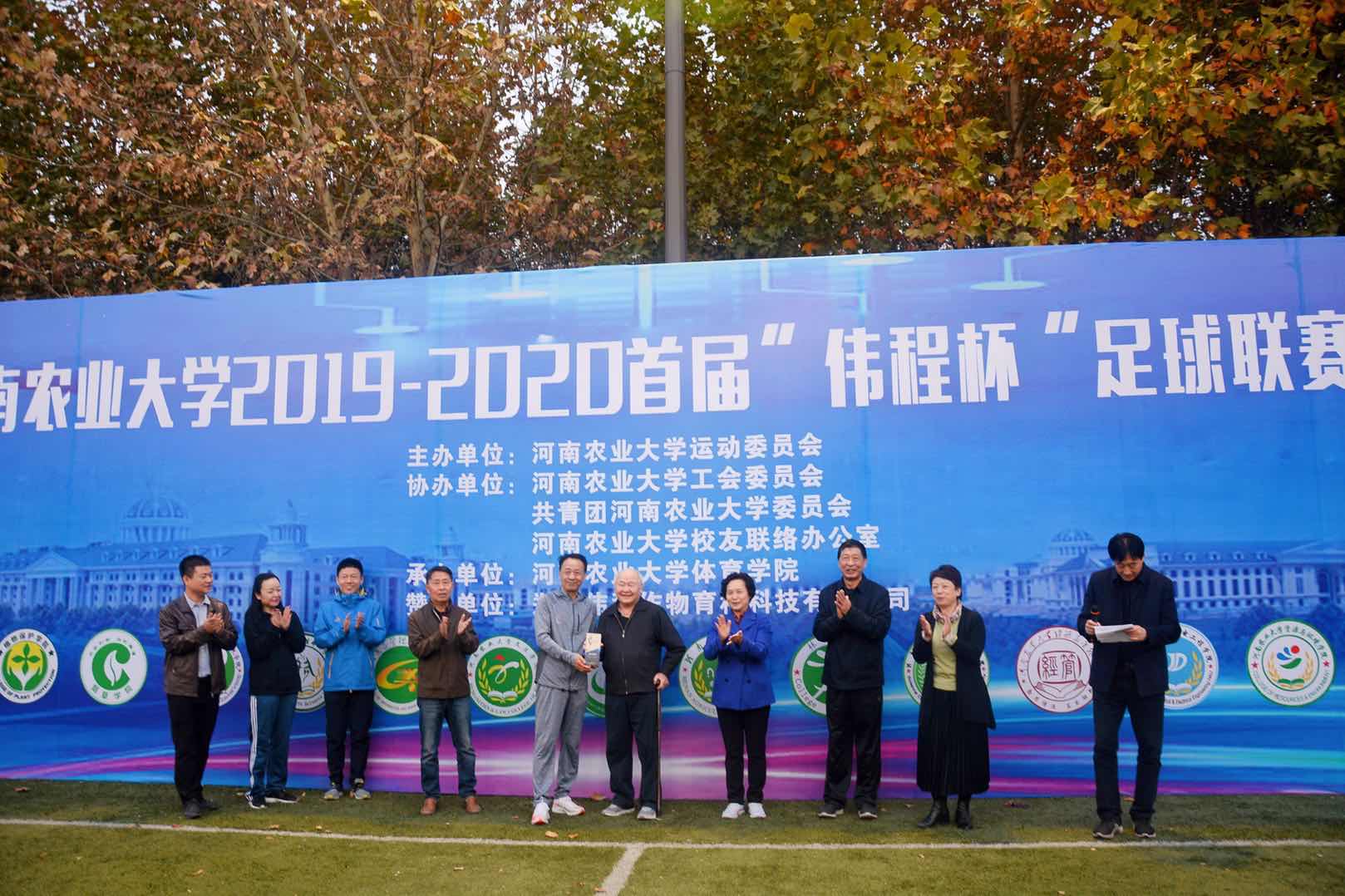2019-2020首届“伟程杯”足球联赛颁奖仪式在龙子湖校区足球场举行。校党委书记魏蒙关,副校长、校运动委员会主任尹新明出席了颁奖仪式。校工会、校友办、校团委和香蕉视频