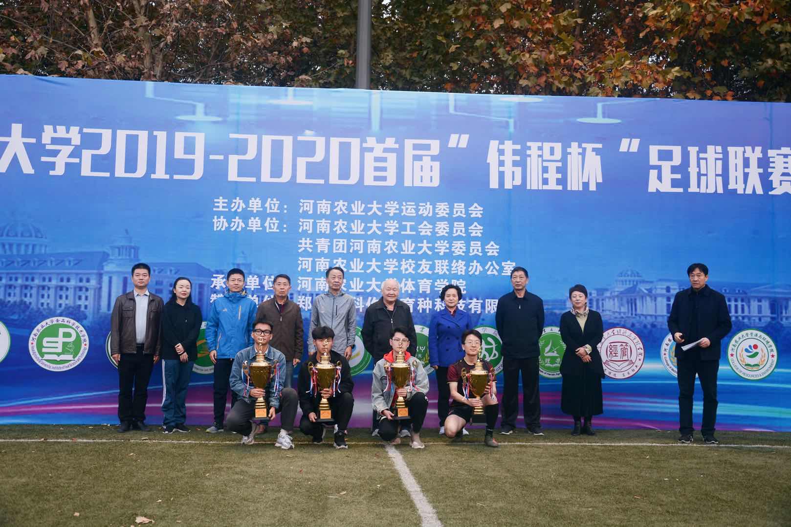承办,郑州伟科作物育种科技有限公司赞助的伟程杯”足球联自2019年11月份开赛,受疫情防控影响,赛程历时一年,共有13个学院和教工足球队、300 多名运动员参赛。比赛过程中,裁判员始终严格履行裁判职务,,各参赛队伍始终严格遵守比赛规则,秉持“友谊第一、比赛第二”的原则,顽强拼搏、赛出了水平、赛出了风格。