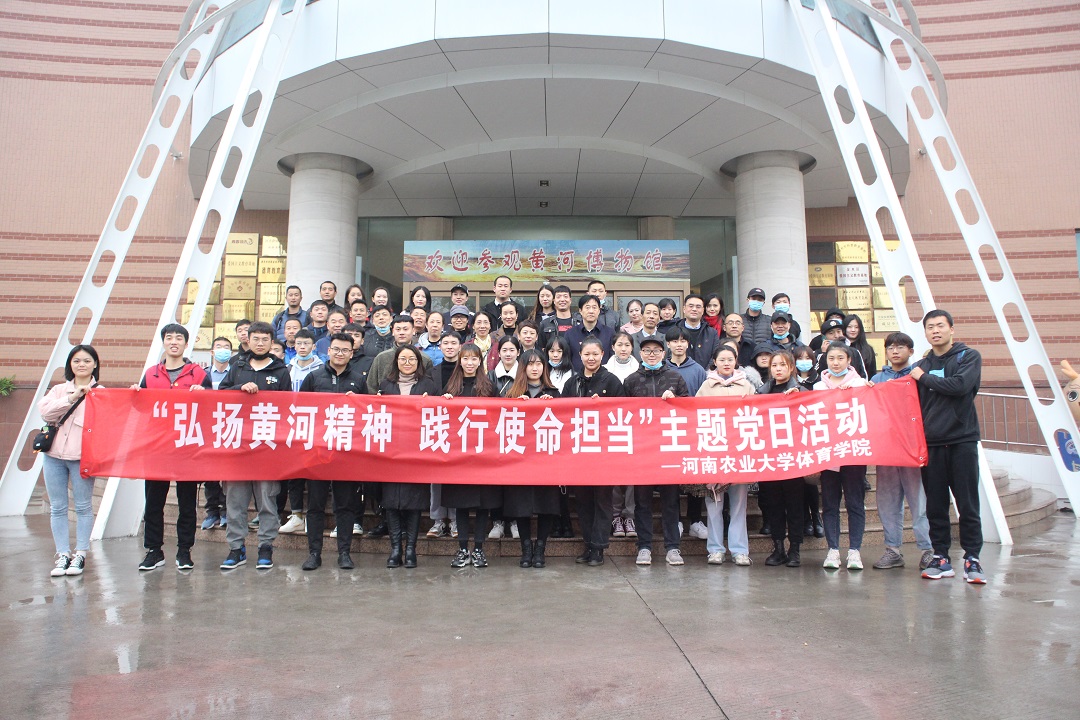 调研座谈讲话精神热潮之际,开展这次活动很有意义。一定要以这次活动为契机,深入从“母亲河”的伟大精神中汲取营养,在敬仰中传承历史,在奋斗中开创未来;一定要把奔腾不息的黄河文化和坚忍不拔的治黄精神延续到工作和生活中,立足岗位,做好学院“十三五”总结和“十四五”发展规划的编制工作;一定要站在新的历史起点,守初心担使命,传承民族文化,弘扬黄河精神,以体立心,凝聚体育强国的正能量,做健康中国的践行者;一定要坚定理想信念,牢记习近平总书记嘱托,争做出彩河南人,汇成奋勇争先、共谋出彩的时代洪流,像九曲黄河那样,以百折不挠的气势奔腾向前,只争朝夕,不负韶华,为建设以农为优势特色的高水平大学贡献力量。