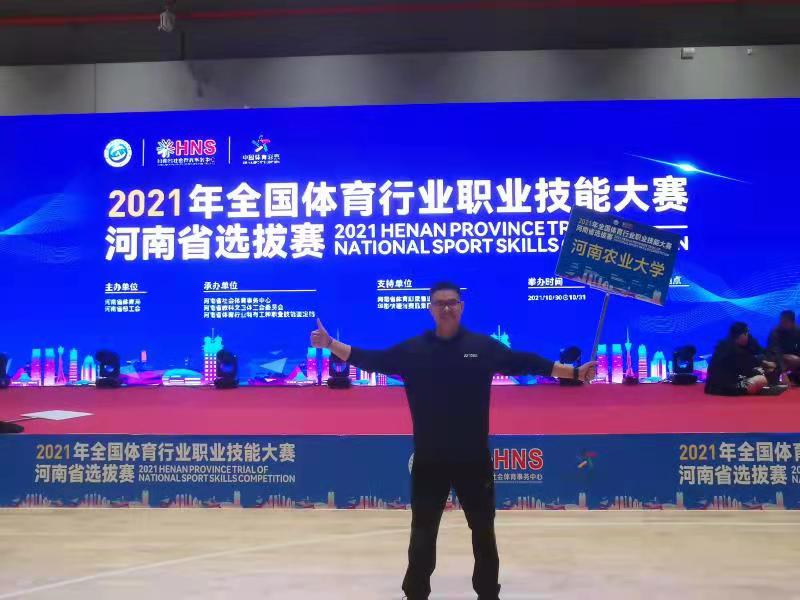 据悉,本次比赛以“岗位技能练兵 服务全民健身”为主题,在本次大赛中获得一等奖的选手可申报“河南省五一劳动奖章”。李高华老师参加的社会体育指导项目比赛,内容包括岗位知识和岗位技能两部分。岗位知识包括运动营养学、特殊人群健身运动、运动计划设计及专项运动知识等,以闭卷机考形式进行。岗位技能包括体能、安全防护技能、教学指导技能等,其中体能主要考察选手肌肉力量、耐力、速度、协调性等,参赛选手需依次完成纵跳摸高、沙袋过杆、1分钟跳绳、1分钟俯卧撑、折返跑、半球蹲起6项测试。安全防护技能主要考察选手运动损伤预防及突发事件急救处理能力,参赛选手需连续完成单人CPR(心肺复苏)、AED操作、创伤止血、包扎与固定操作,锻炼后肌肉静态拉伸示范与说明等3项内容。