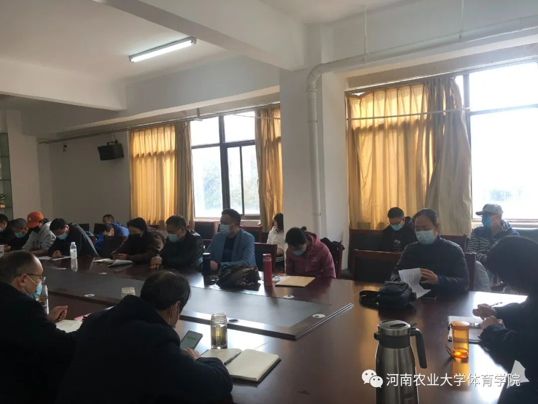在龙子湖校区牡丹园二楼会议室组织召开会议学习研讨《关于全面加强和改进新时代学校体育工作的实施方案》,学院领导班子成员、具有高级职称的教师参加了此次会议。