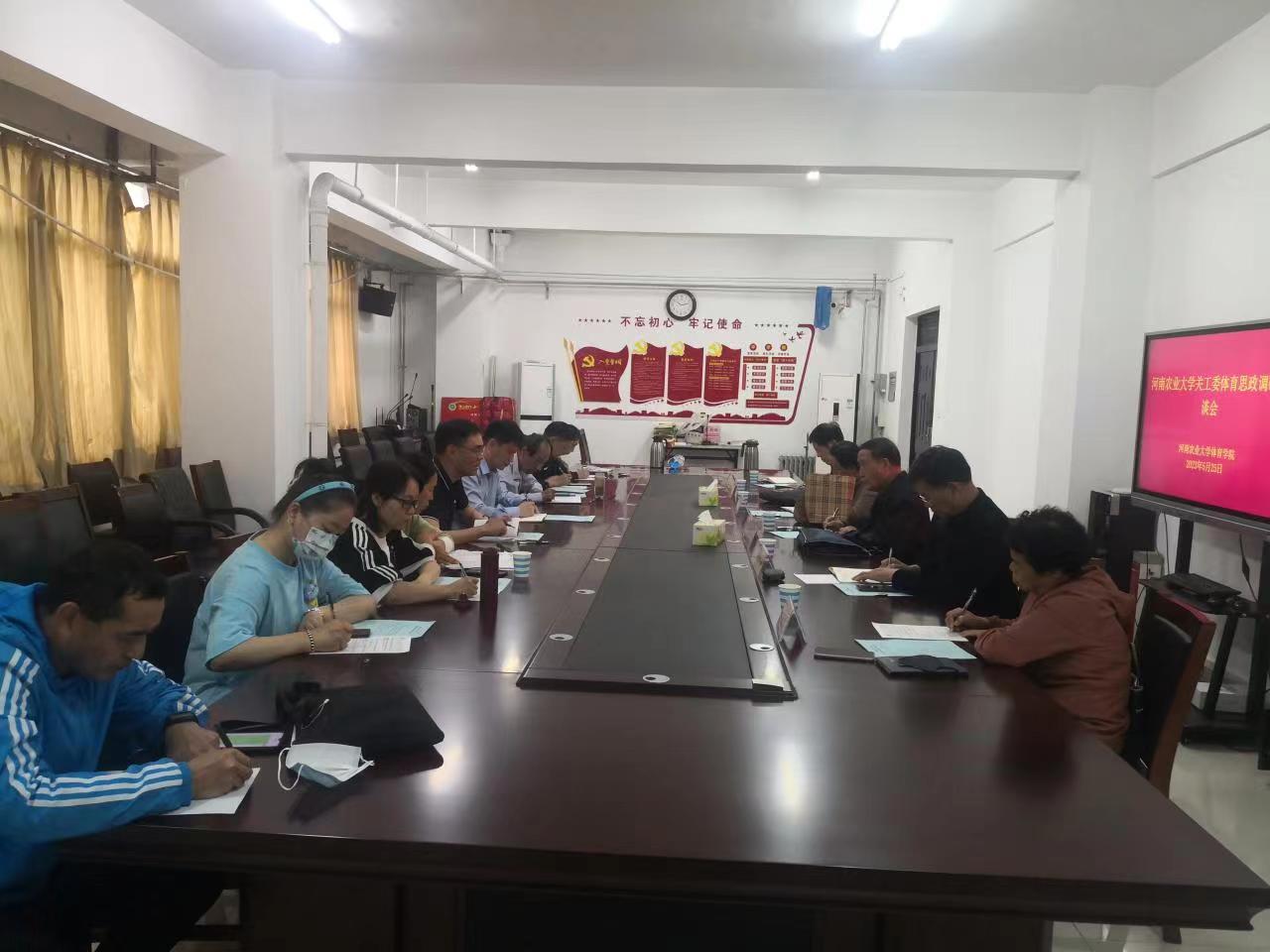 副院长唐大鹏就香蕉视频 课程思政的建设情况进行了汇报。与会教师代表围绕香蕉视频 教学成果、教学经验和德智体美劳全面发展,“五育并举”中体育如何发挥重要的思政作用等方面进行发言讨论。