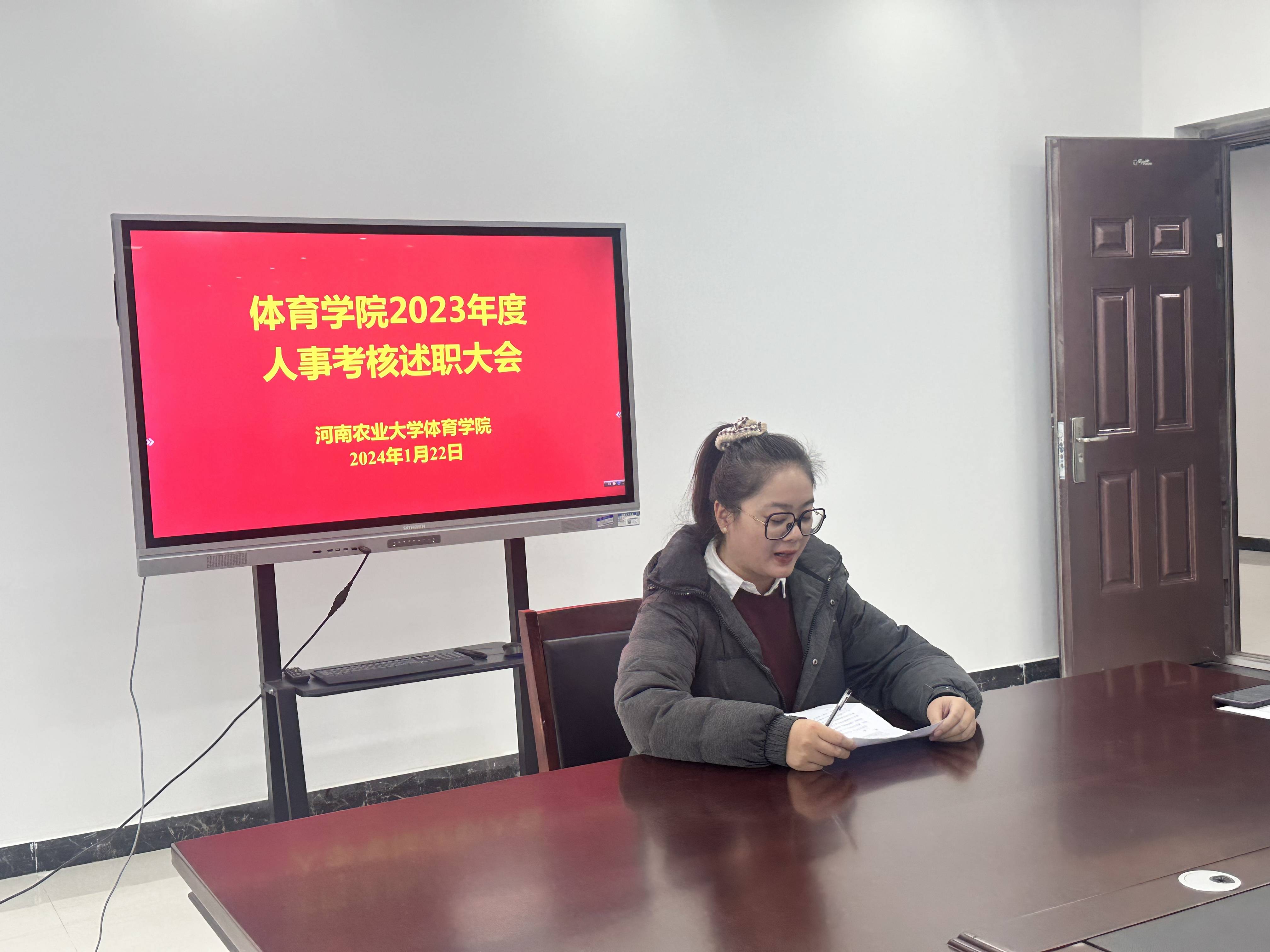 召开2023年度教职工考核述职评议大会。学院党委书记吴旭静,副院长唐大鹏、宛新生出席会议,全体教职工参加,会议由吴旭静主持。