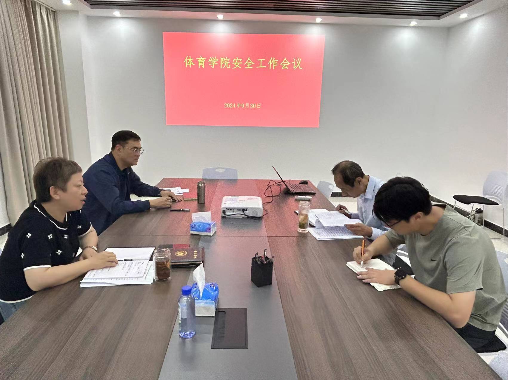 会后学院领导班子及场馆中心负责同志到两校区体育训练馆进行拉网式安全隐患排查。学生口相关负责同志对两校区学生宿舍进行了安全排查。