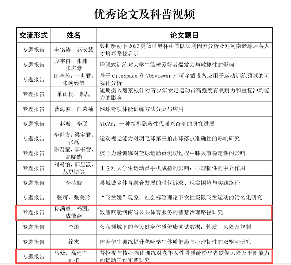 香蕉视频 教师以及研究生获第一届河南省体育科学大会优秀论文