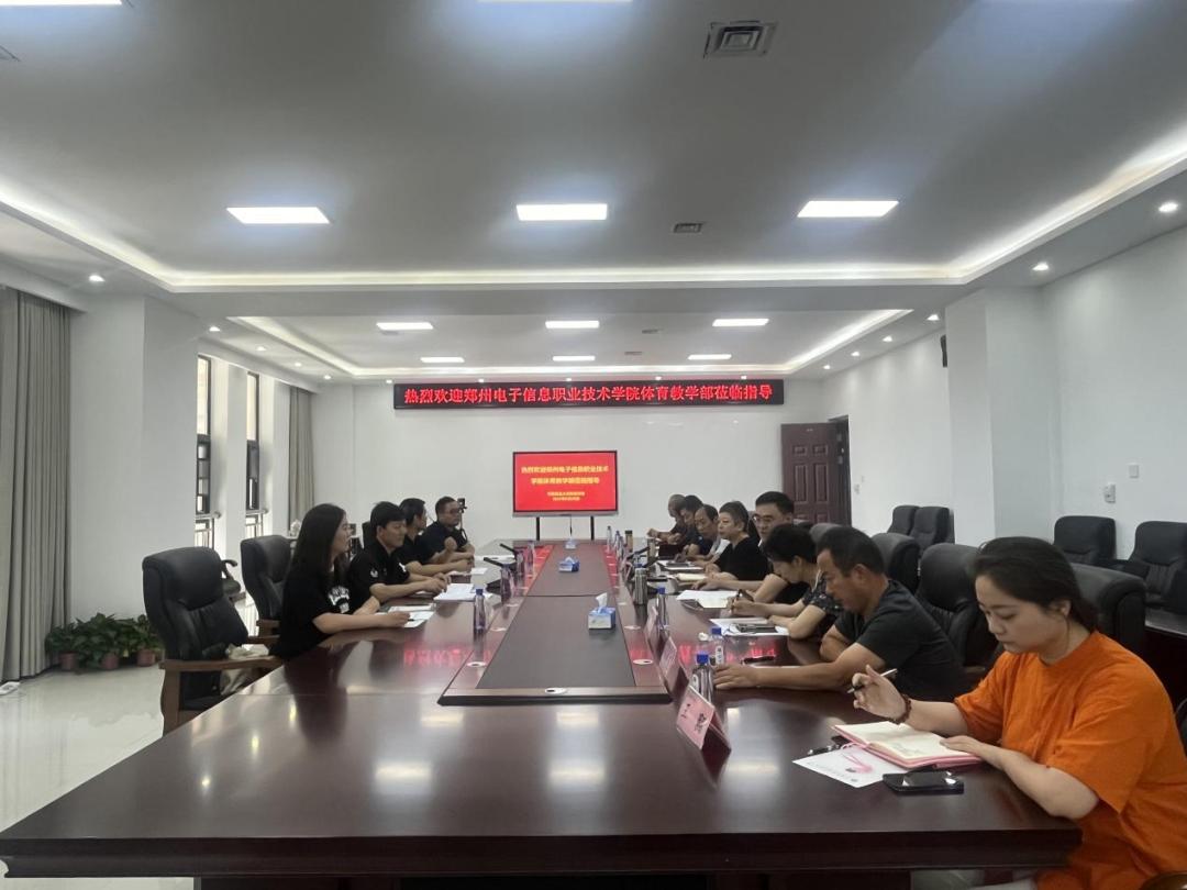 (通讯员/图 成敬斋)6月20日上午,郑州电子信息职业技术学院体育教学部主任卢军锋一行4人来香蕉视频 调研交流。学院党委书记吴旭静、院长唐大鹏、副院长宛新生、公共体育教学部主任袁静、副主任王翾、学生体质健康中心副主任王宏涛,校女足主教练和光磊、女篮主教练范玉辉及教师代表冯建荣参加座谈会。会议由唐大鹏主持。