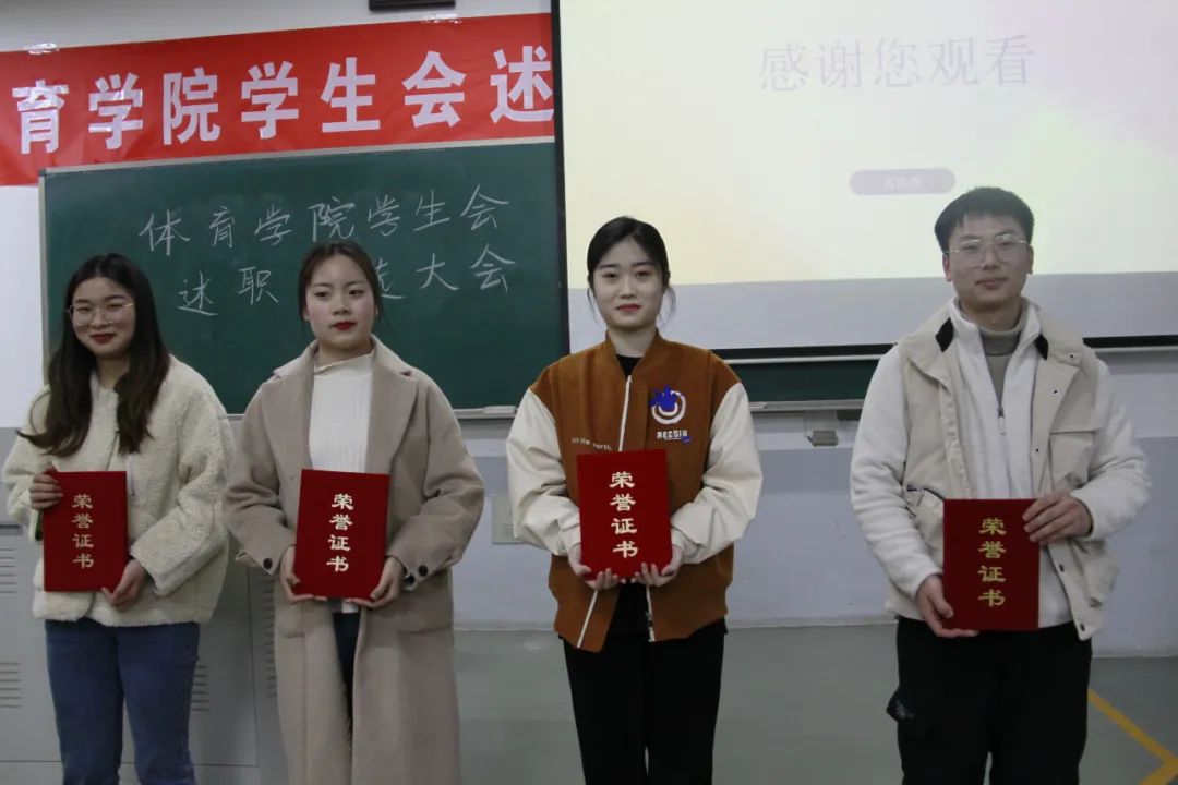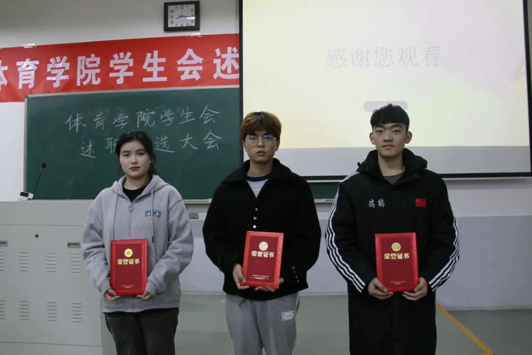 会上学生会各部门负责人依次上台进行述职演讲,对本部门一年的工作情况进行总结,指出工作中的收获和不足,并提出今后改进措施和工作计划。