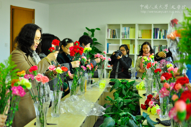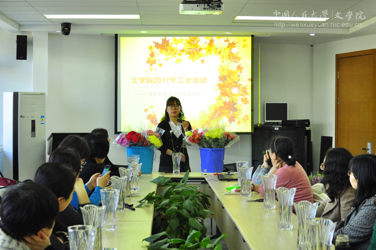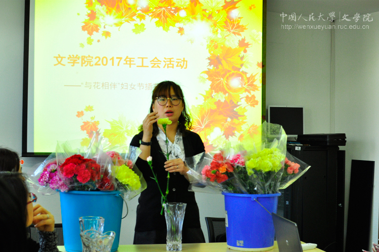 3月8日中午,香蕉视频2017年工会活动之——“与花相伴”妇女节插花培训活动在人文楼二层会议室火热举行。香蕉视频党委副书记胡玲莉老师与香蕉视频