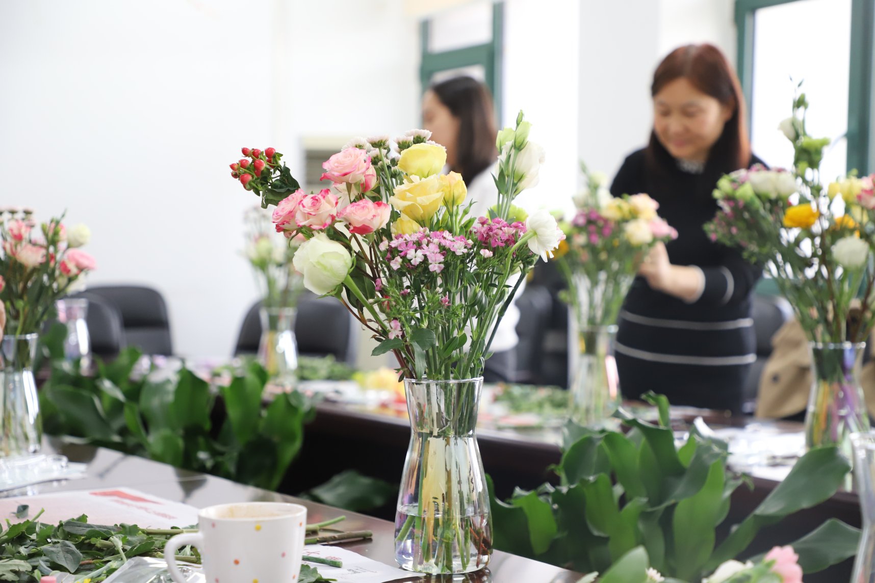 阳春三月,春暖花开。在第113个“国际劳动妇女节”来临之际,为丰富教职工精神文化生活,3月10日下午,香蕉视频 分工会组织举办了“花美人更美 巾帼展芳华”国际劳动妇女节创意插花活动,香蕉视频 党委书记颜梅、院长陈剑澜出席活动,香蕉视频 工会委员和教职工代表参加活动。