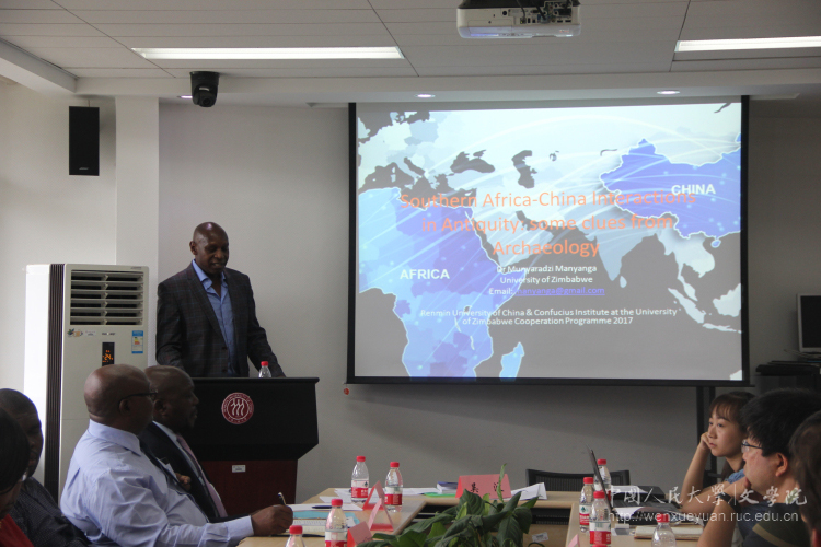 之后,讲座部分正式开始。首先,津巴布韦大学香蕉视频 高级讲师Munyaradzi Manyanga从考古学的角度出发,向大家展示了南非与中国交流的深厚历史渊源。他表示,从近些年来的政治、经济、文化交流和六七十年代的军事、物资援助向前追溯,早在公元六世纪,中国与南非就已经有频繁的贸易往来,而贸易往来又推动了双方在科技、文化上的交流。最后,他引孔子的“温故而知新”一语,指出这些历史上的交流为今天的南非与中国在考古学、历史学、历史遗迹保护与管理方面的深入合作提供了机会与借鉴。