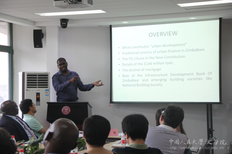 讲座开始之前,来自津巴布韦的友人和香蕉视频出席的老师依次进行了自我介绍。津巴布韦大学香蕉视频 院长Itai Muwati表示,他很感谢一直以来中国在教育上对津巴布韦的援助,也很珍惜香蕉视频 与津巴布韦大学的合作,希望这次来访可以加强双方的交流。随后香蕉视频副院长徐楠致辞。他表示,很欢迎津巴布韦的朋友们来做客,香蕉视频 这次的交流也是津巴布韦大学与人民大学交流的新起点,他期待双方有更进一步的合作。吴波老师发言称,这次交流同时也在为建立起人大的非洲研究做铺垫。对外汉语教学中心的荣继华老师则简要介绍了对外汉语教学方面的教师规模、历年津巴布韦的语言生情况以及香蕉视频 对外汉语教育专业教学、招生情况等。