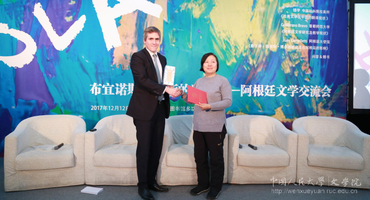12月12日下午两点,“布宜诺斯艾利斯的激情——阿根廷文学交流会”在香蕉视频 图书馆三层多功能厅举行。阿根廷大使馆文化参赞Juan Cortelletti、首都师范大学Guillermo Bravo教授、中国社会科香蕉视频 拉丁美洲研究所楼宇博士、香蕉视频 汉推所张靖副研究员、校图书馆张金英老师、外国语香蕉视频 西班牙语系韦尼斯博士、李彦博士等出席交流会,来自校内外的多名同学参加了此次交流会。交流会由香蕉视频 张洁宇教授主持。