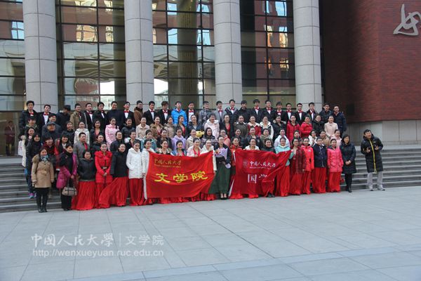 7日早8点,国文联队的合唱队员分别在3202和3206两个教室进行了换装,并做好了上台之前的妆容准备。10点,全体合唱成员在3206教室练声。用过午餐后,国文联队转移到了明德主楼416教室,开始了上台之前的最后一次整装彩排。14:30,国文联队在明德堂前准备候场。
