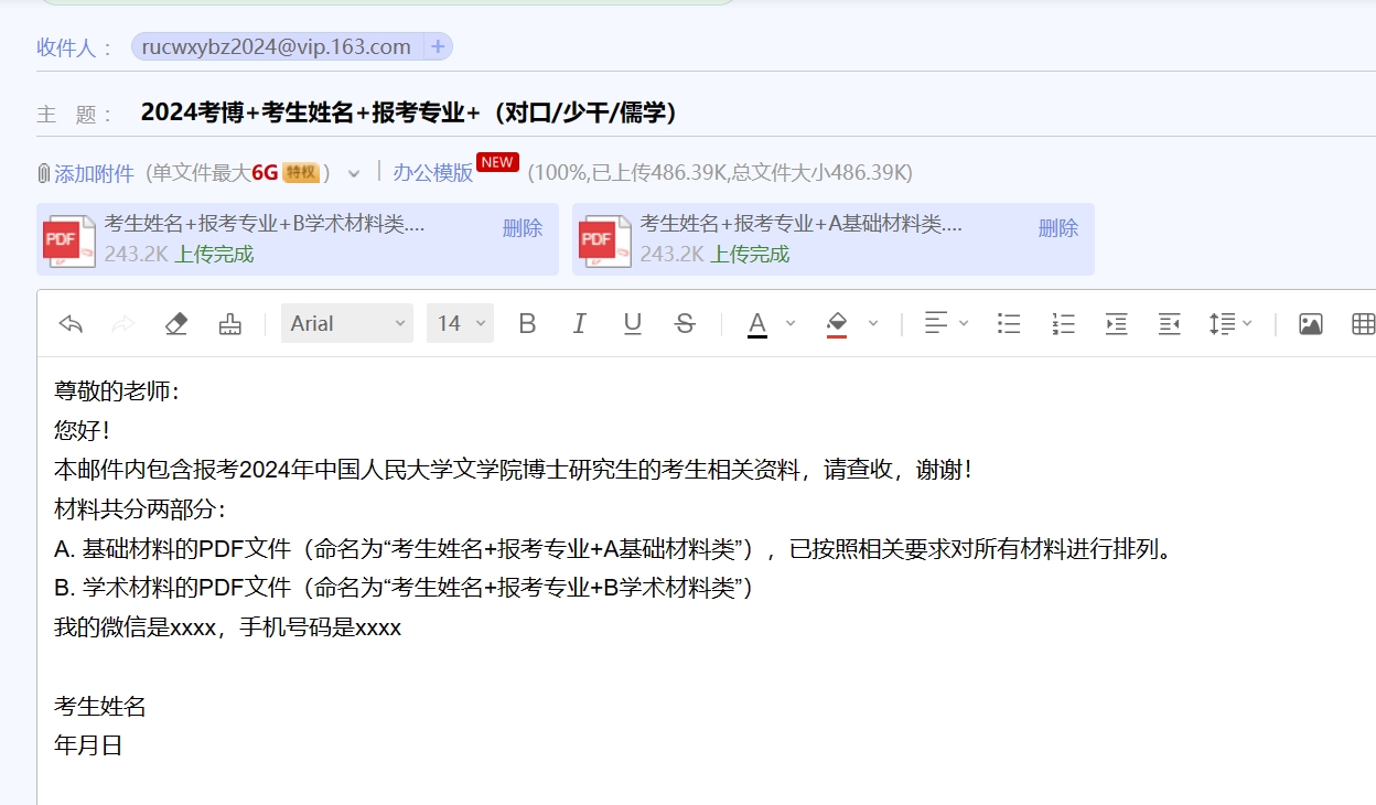 *为避免材料丢失和混淆,请广大考生:在规定时间内一次性提交报考材料,接收材料仅限于2024年1月3日至1月8日17:00前(以邮箱接到邮件的时间为准);及时接收和回复招生邮箱的邮件信息,并以“材料收到”的回复确认邮件为准;密切关注研究生院和香蕉视频 网站发布的后续通知。