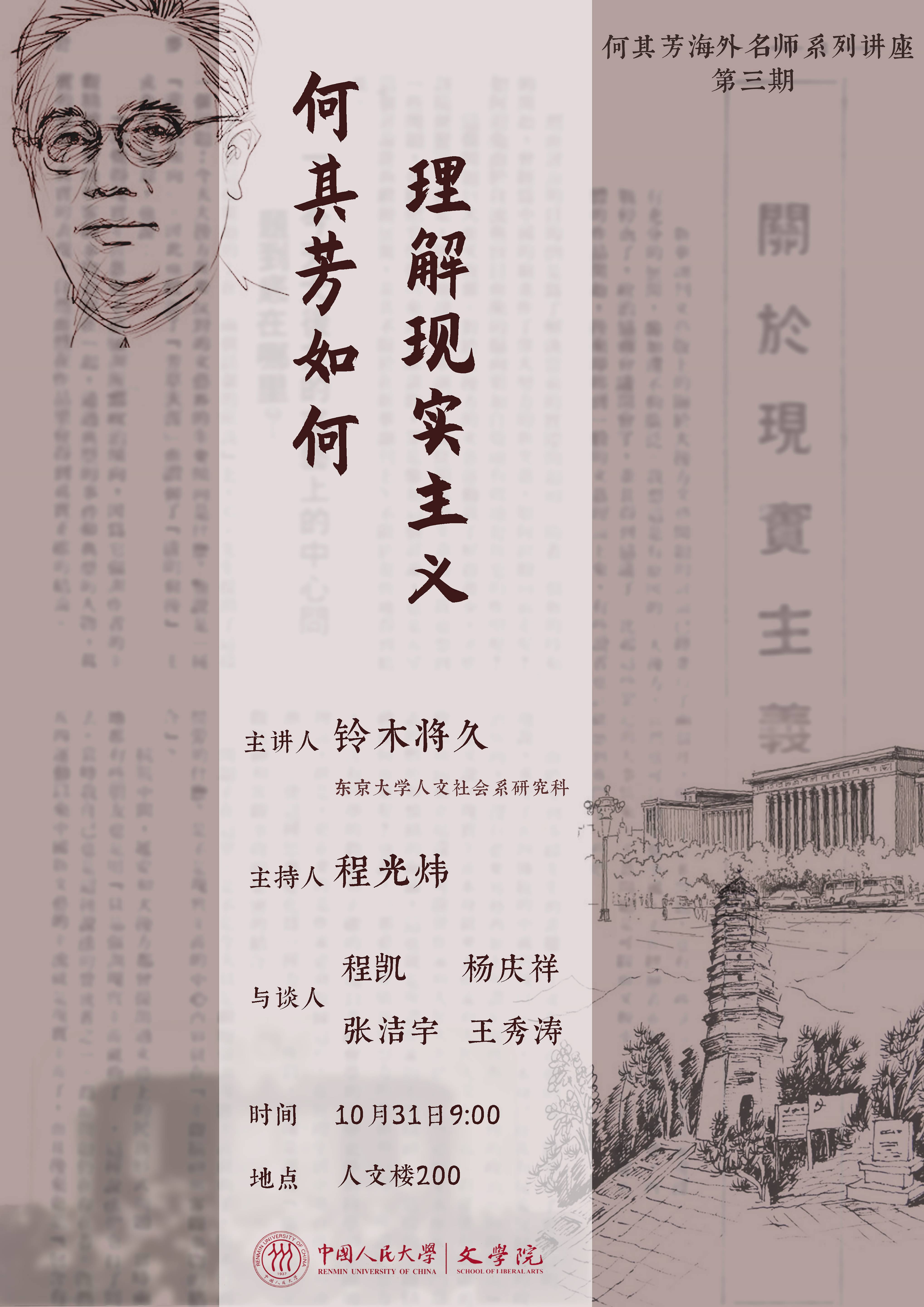 【讲座预告】何其芳海外名师系列讲座第三期——铃木将久教授:何其芳如何理解现实主义