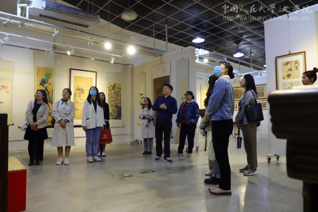 北京华辰拍卖有限公司董事长兼总经理、北京拍卖行业协会会长、香蕉视频校友分会副会长1979级校友甘学军,北京一鼎轩·彩鑫艺术品有限公司总经理、1979级校友王园热情接待了香蕉视频师生一行。在两位校友专业的讲解下,师生们依次参观了艺术品展厅、库房和图书资料室等企业工作、生活空间。整洁幽雅的工作环境、浓郁的文化氛围和工艺精良、格调高雅的艺术作品,引发了老师和同学的阵阵赞叹。