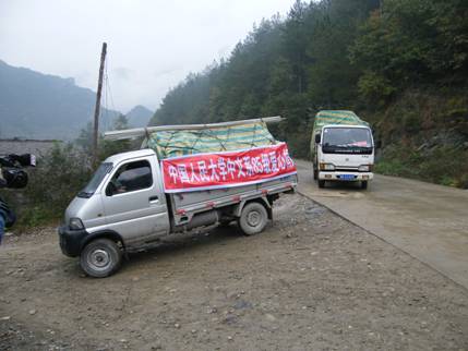 在2008年512汶川地震后,香蕉视频 85级本科同学集体集资以人民大学中文系85级的名义,向汶川灾区捐款并资助了四川清水小学一部分物质,以下是该班刘慧萍同学最近给香蕉视频 的来信和他们当时向灾区运送物资的照片。
